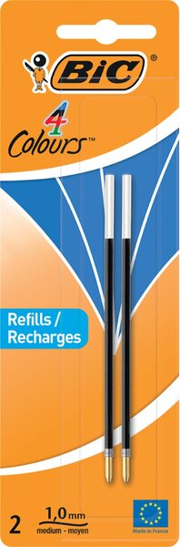 Kugelschreibermine für 4-Farb-Stift. In vier Schreibfarben. Mit dokumentenechter Tinte, außer Rot. Strichstärke: 0,4 mm. Blister à 2 Stück.