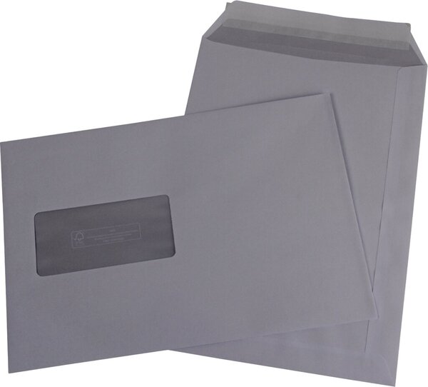 Versandtasche FSC ,C5, Haftklebung, mit Fenster, weiß, 90g, mit grauen