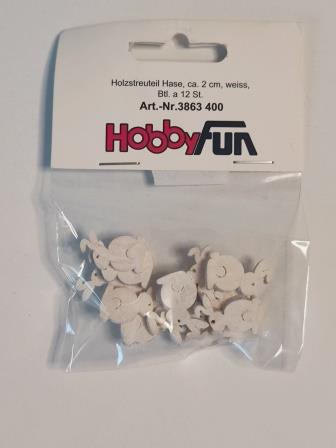 Holzstreuteil Hase ca. 2 cm, Btl. à 12 St., weiss