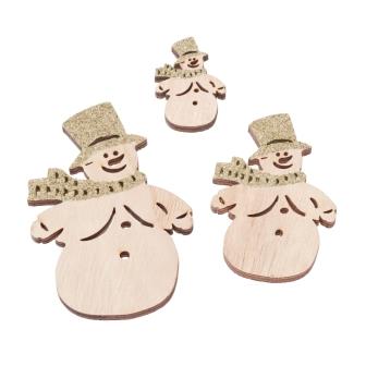Schneemann, 4 - 9,5 cm, Holz, Btl. à 3St. Sort., goldfarben