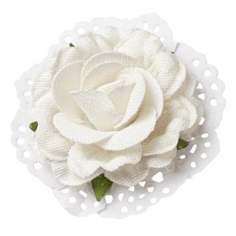 Rosen IV in Leinen-optik, 6 cm, Btl. à 2 St., weiss