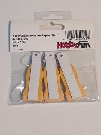 3D-Wabenrosette aus Papier, 10 cm, gelb, Btl. à 3 St.