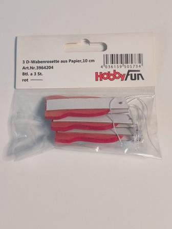 3D-Wabenrosette aus Papier, 10 cm, rot, Btl. à 3 St.