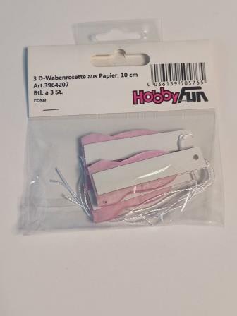 3D-Wabenrosette aus Papier, 10 cm, rosé, Btl. à 3 St.