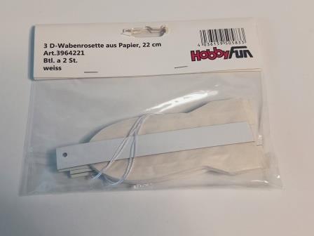 3D-Wabenrosette aus Papier, 22 cm, weiss, Btl. à 2 St.