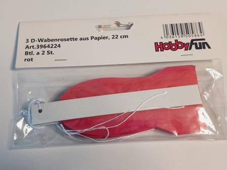 3D-Wabenrosette aus Papier, 22 cm, rot, Btl. à 2 St.