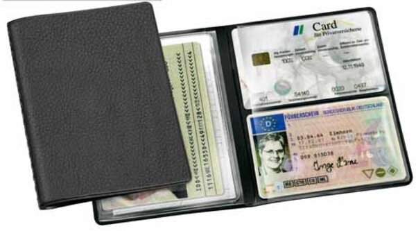 Ausweishülle, hochwertige PVC-Folie, mit 1 Tasche passend für Kfz-Schein und/oder Führerschein und 2 Taschen für Kreditkarten oder andere Ausweise, schwarz