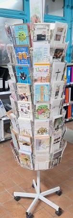 Kartenständer Boden-Drehdisplay „Geschenkkarten“ 80 Kartenfächer| Ø 600 mm 1950 mm, weiss leer