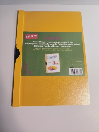 Aus farbiger Hartfolie mit blendfreiem, transparentem Deckblatt und Federstahlklemme. Fassungsvermögen: bis zu 30 Blatt (80 g/qm). Für Format DIN A4.