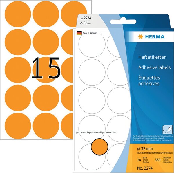 Etikett 32mm Farbpunkt leuchtorange 360 Stück