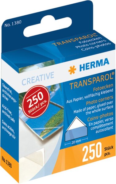 Selbstklebende, fast unsichtbare, Fotoecken zum Einkleben von Fotos. Die Fotos können beliebig oft entnommen und wieder eingesteckt werden. Klebestoff lösemittel- und säurefrei.