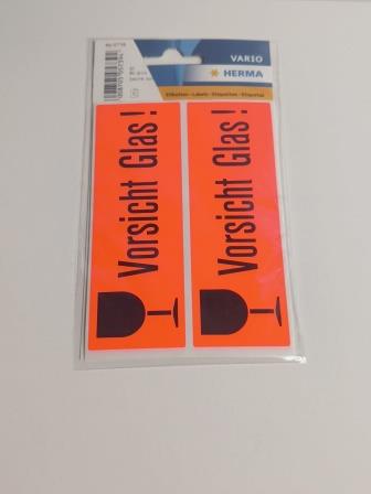 Hinweisetikett Vorsicht Glas 39x118 mm