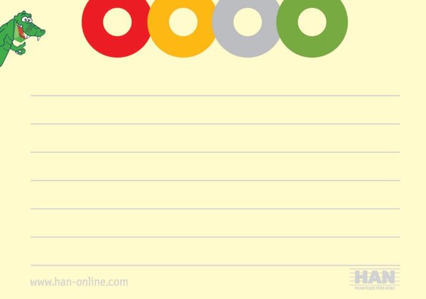 Karteikarten für CROCO. Karteikarton 190 g/qm. Für mehr System beim Lernen! Inkl. 4 bunten Kreisen zum Ankreuzen für Lernerfolge mit Garantie. Chlorfrei gebleicht. Farbe der Lineatur: grau. Farbe des Karteikartons: gelb. Made in Germany.
