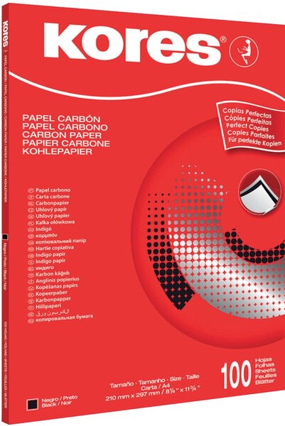 Kohle- und Durchschreibpapier schwarz für Schreibmaschinen und blau für Handschrift. Saubere und einfache Handhabung für mehr als 50 Durchschriften. Format: DIN A4.