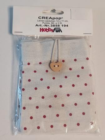 Leinensäckchen 14 x 11 cm Punkte 2 farbig Btl/3Stk