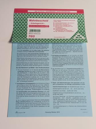 Mahnbescheid A4 f. Arbeitsgericht