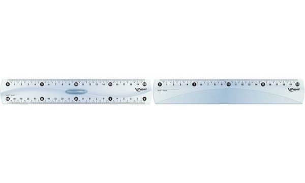 Maped Flachlineal Start 146, 200 mm, aus Kunststoffmit Griff, Skalenaufdruck mit UV-beständiger Farbe, mitMasseinteilung, auf beiden Seiten (mm-Einteilung und5 mm-Einteilung), transparent, im Schutzetui(M146108)