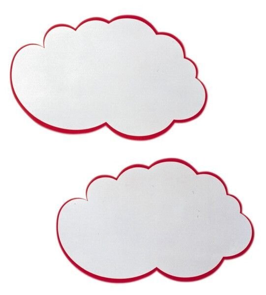 Weiße Moderationswolken mit rotem Rand. 170 g/qm aus 100 % Altpapier. Packung à 20 Stück.