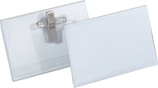Namensschild mit Nadel und Klemme zum Anstecken oder Anklemmen. Aus hochtransparenter Hartfolie. Mit auswechselbarem blanko Einsteckschild. Einsteckschilder: DUR1455WS. Einfache Beschriftung mit kostenloser DURAPRINT® Software mit Datenbankfunktion.