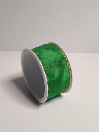 Organzaband mit Drahtkante dunkelgrün 40 mm