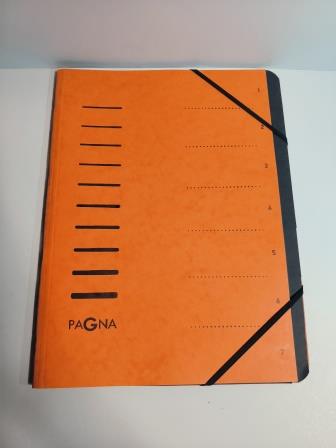 PAGNA Ordnungsmappe "Sorting File", 7 Fächer, orangeaus Karton, mit Eckspanngummi, schwarzes Griffregister,Organisationsdruck auf der Vorderseite 1-7Maße: (B)245 x (T)4 x (H)320 mm(40058-12)
