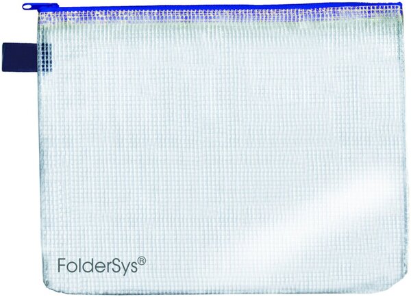 Reißverschlussbeutel aus faserverstärktem PVC. Farbe: transparent. Textil-Reißverschluss mit Metall-Gleiter in jeweils einer Farbe pro Größe. Folienstärke: 150 my. Mit Fingerschlaufe.