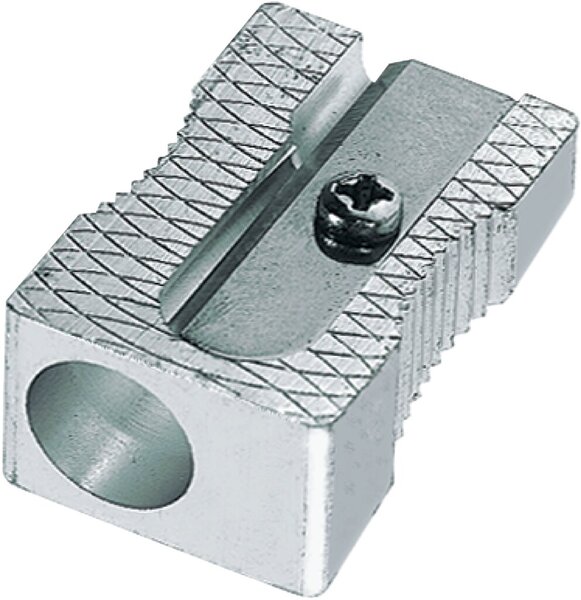 Bleistiftspitzer aus Magnesium, einfach, in Keilform. Für Stifte bis 8,2 mm ø.