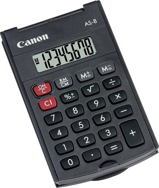 Kompakter und leichter 8-stelliger Taschenrechner im Arc-Design. Gehäuse und Abdeckung werden aus recyceltem Material von Canon Kopierern hergestellt. Die robuste Abdeckung ist um 360° drehbar und nach oben aufklappbar. Eine große LCD-Anzeige sorgt für Üb