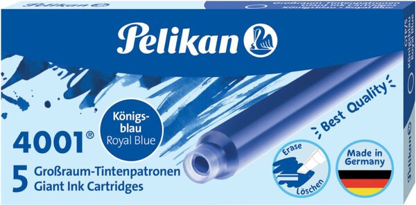 Königsblaue Tintenpatronen, auswaschbar und löschbar.