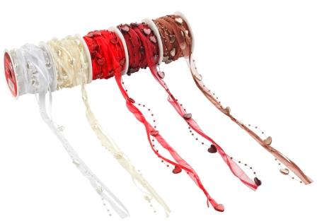 TRENDY-Band mit Herzen, Rol. à 10 m, weiss ldm
