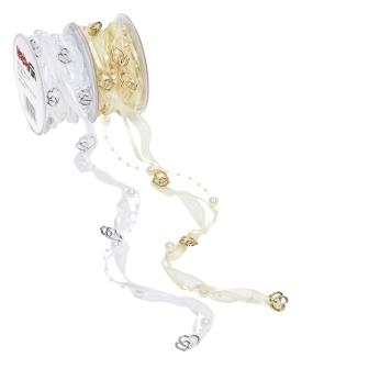 TRENDY-Band mit Perlen + Herzen, ldm, weiss/silber ldm